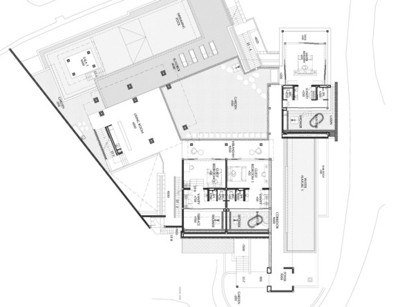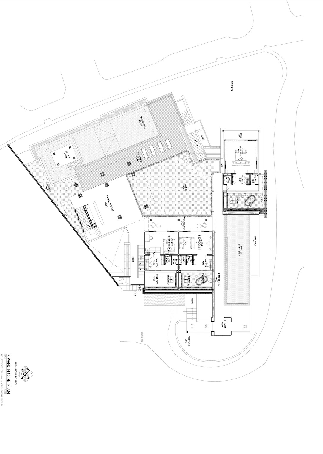 The villa is designed so that its twin-level main living areas form a focus beside the 20 m-long infinity-edge swimming pool. Key to the design concept is that off from the main living pavilion, there are many private areas allowing guests to disperse or join one another in different shaded or open areas.  Blending the indoors with the outdoors is achieved using extensive folding and sliding doors to transition inside the villa spaces to the outside seamlessly.  High 3m+ ceilings and generous room sizes project the luxury of space even within the intimate and private bedroom areas.