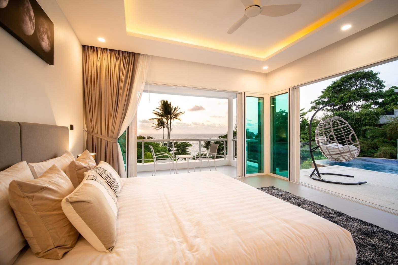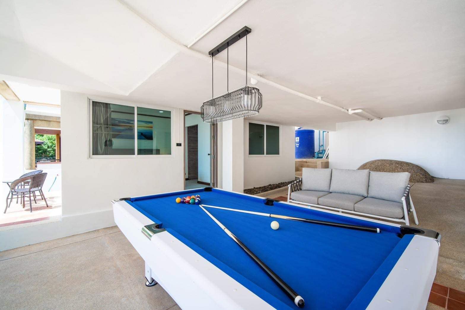 Descend to the lower level to discover two additional guest bedrooms with private balconies, offering versatile accommodation options for family and friends. The villa also includes a 2-car garage, storage room, and an infinity-edge pool with an expansive pool deck – the perfect setting to soak up the tropical ambience.