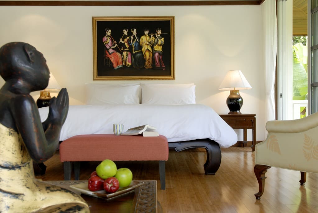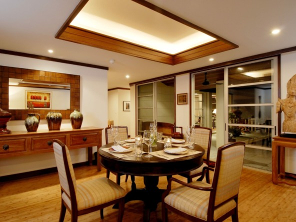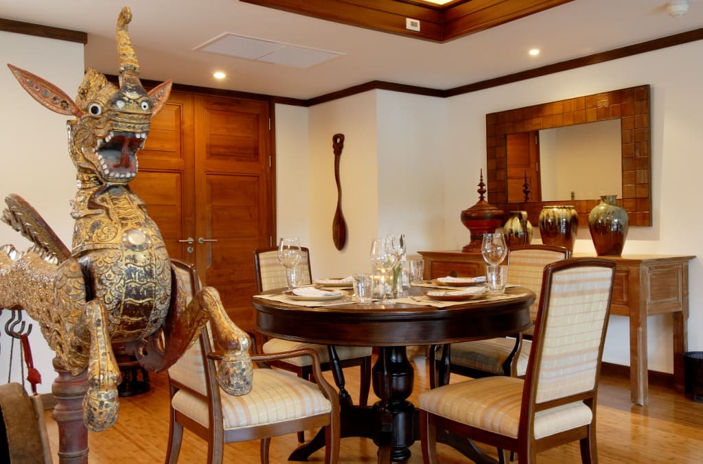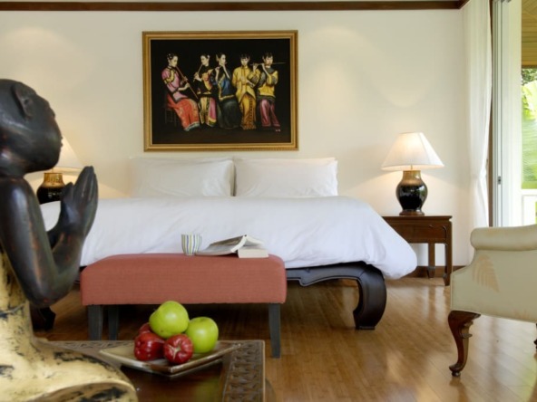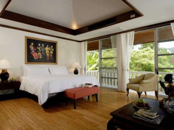 Kata Villa is a beautiful 3-bedroom villa situated within the secluded, private estate. It is decorated throughout with unique artwork, antique wood carvings, and Thai-style furnishings. Each bedroom has an en suite bathroom and each occupies a separate floor allowing great privacy. A large infinity edge pool enjoys unrestricted views of the hills of Phuket. The open-plan living and dining areas look out across the pool and terrace. A fully equipped kitchen is perfect for in-home entertaining or for use by a private chef.