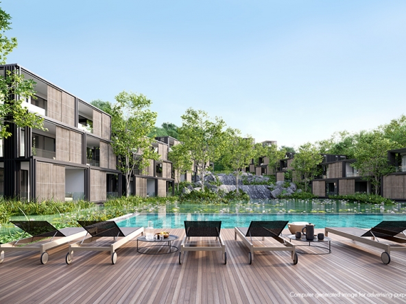 The exclusive community is over an area of 454 rai (180 acres) with a master plan that has also been designed to include eco-sustainable hillside developments including a medical wellness spa and a retirement village, some of which are in the planning stages. The low-density approach to the site allows for organic community gardens, rainwater harvesting from the natural catchment, and adventure and hiking trails throughout a 200 rai (80 acres) protected rainforest nature reserve.