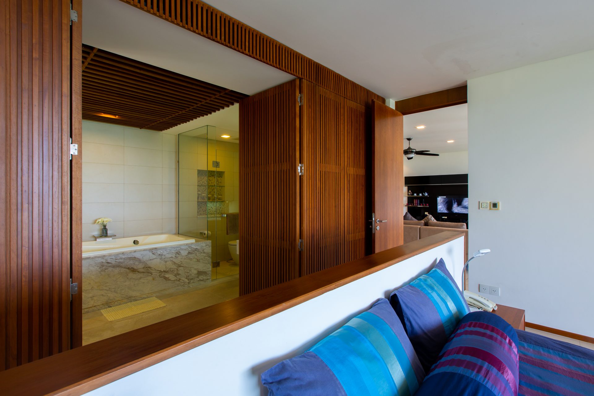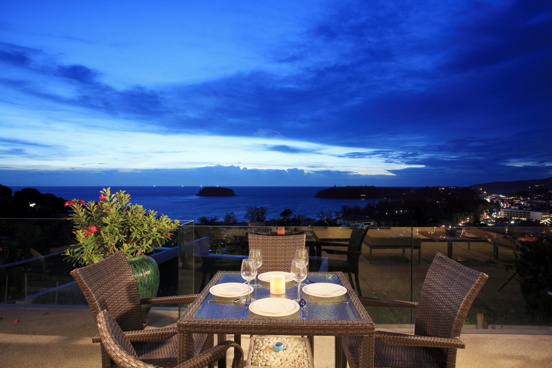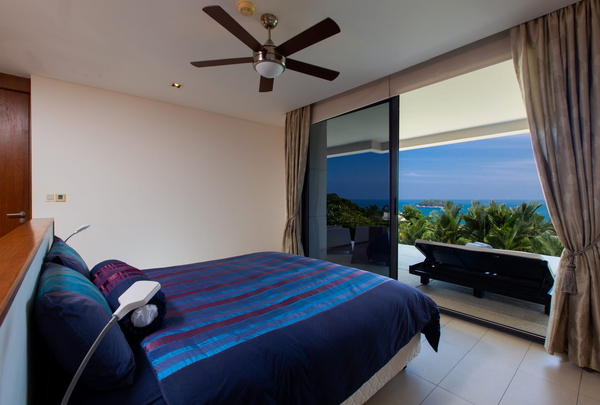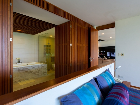 Modern 2-bedroom 2-bathroom ocean and mountain-view apartment in Kata featuring open-plan living area with large terrace.