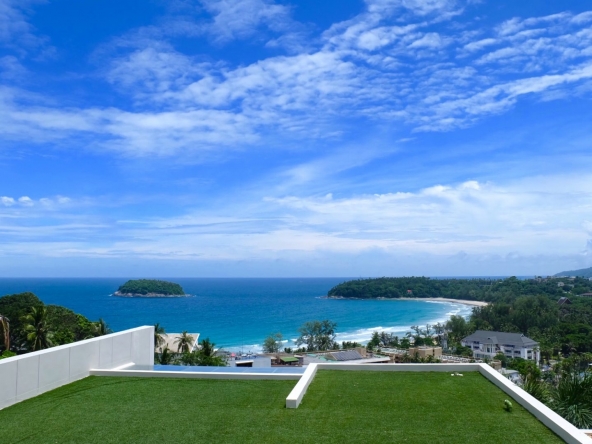 Stunning 2-bedroom 2-bathroom ocean and mountain-view apartment in Kata featuring open-plan living area with large terrace.