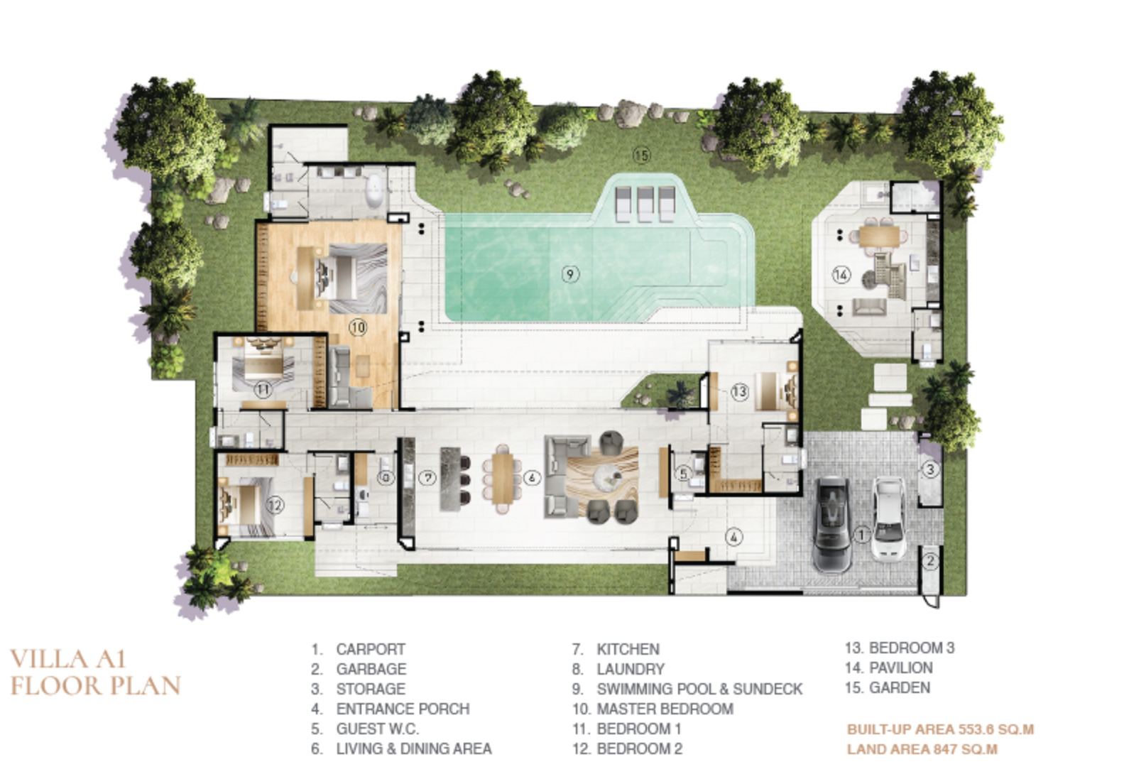 Type A1 – 4 bed, 6 bath, Land Size: 847 SQM – Built-up 553.6 SQM