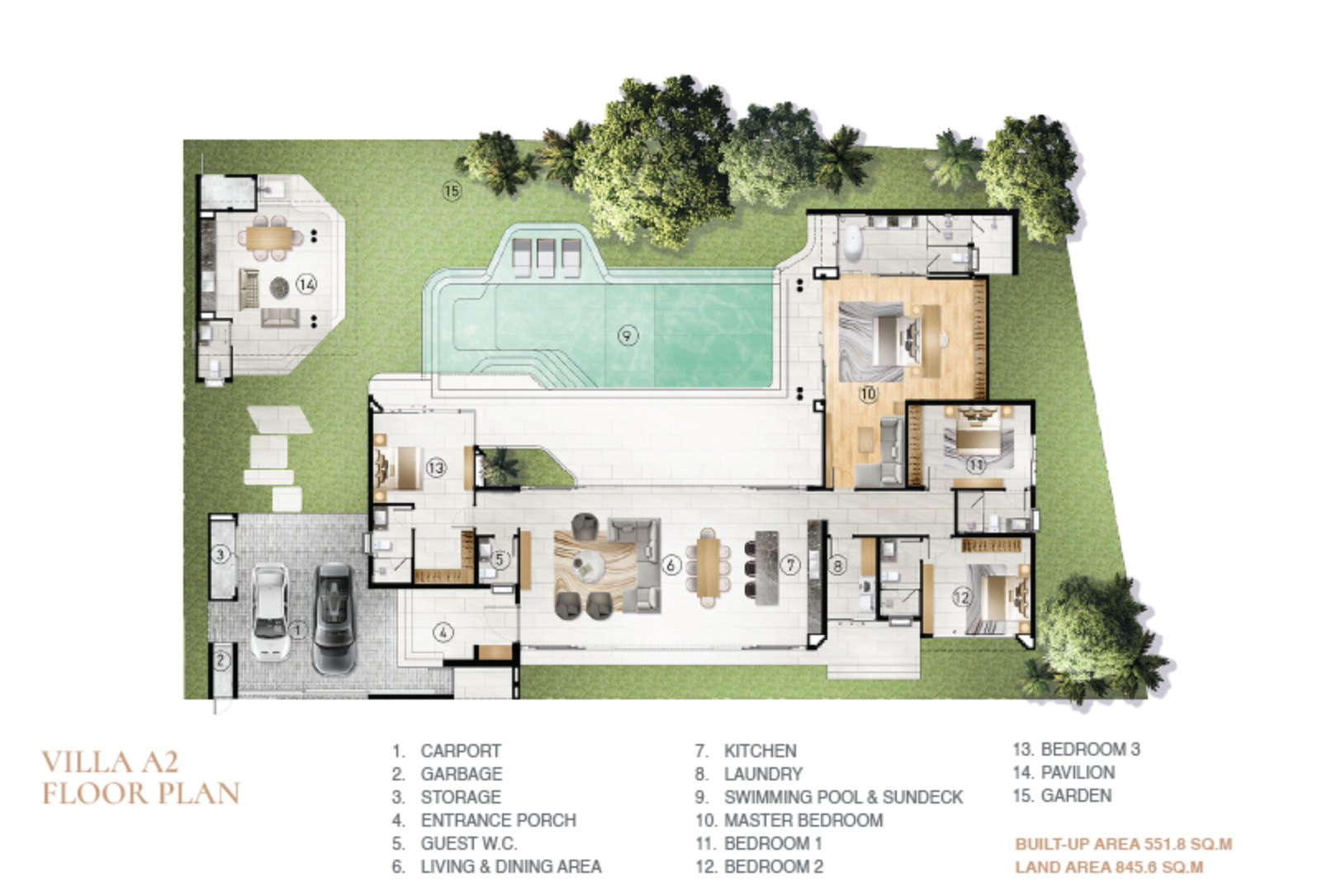 Type A2 – 4 bed, 6 bath, Land Size: 845.60 SQM – Built-up 551.8 SQM
