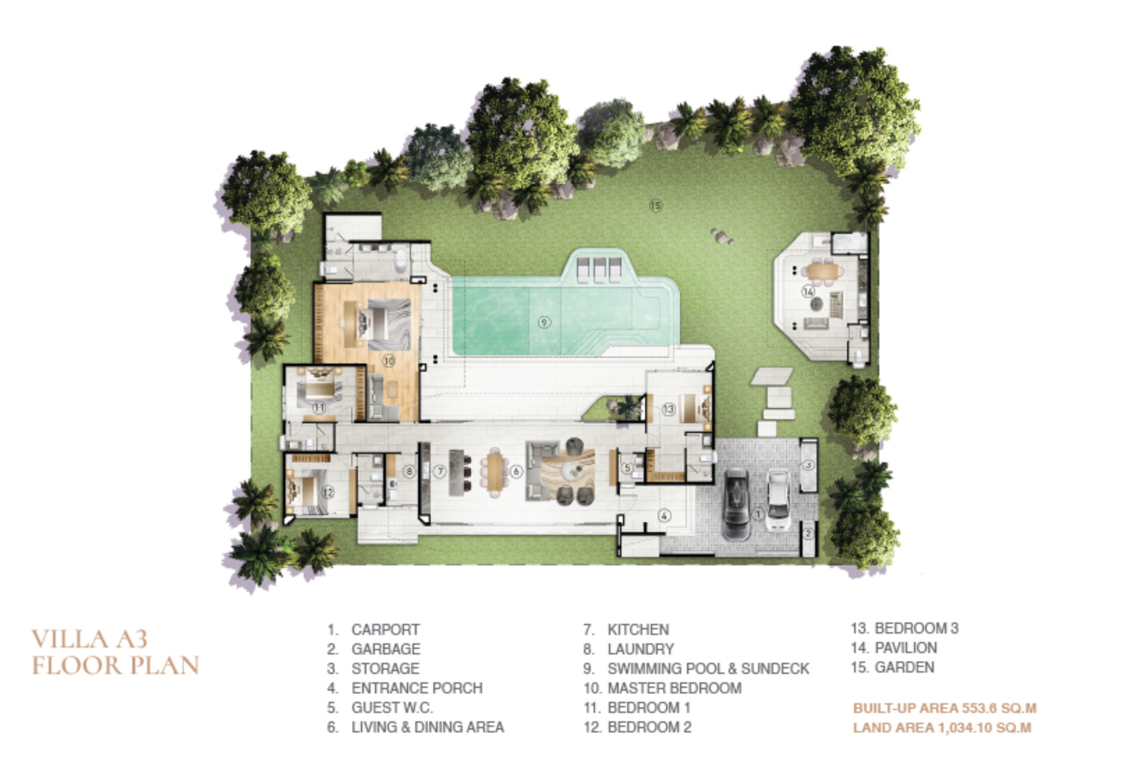 Type A3 – 4 bed, 6 bath, Land Size: 1,034.10 SQM – Built-up 553.6 SQM