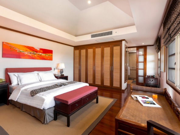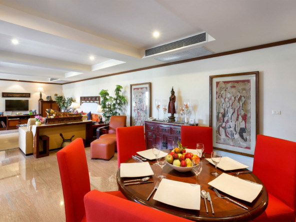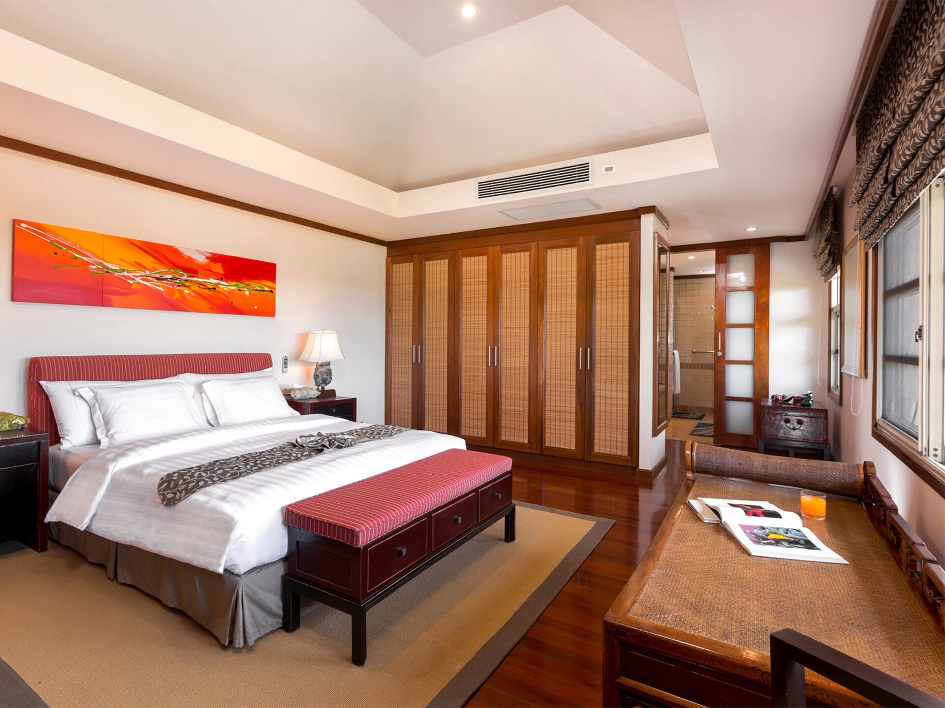 This elegant, staffed, 4-bedroom villa, with jaw-dropping sea views and a fascinating collection of Asian artifacts, offers plenty of space for guests to unwind. Some bedrooms offer private balconies and bathtubs, while the spacious living lounge and kitchen spill onto the pool deck. Tall glass doors allow access to the terrace and its fabulous 2.5-meter plunge pool and charming sala, the ideal place for sunset cocktails and alfresco dining.